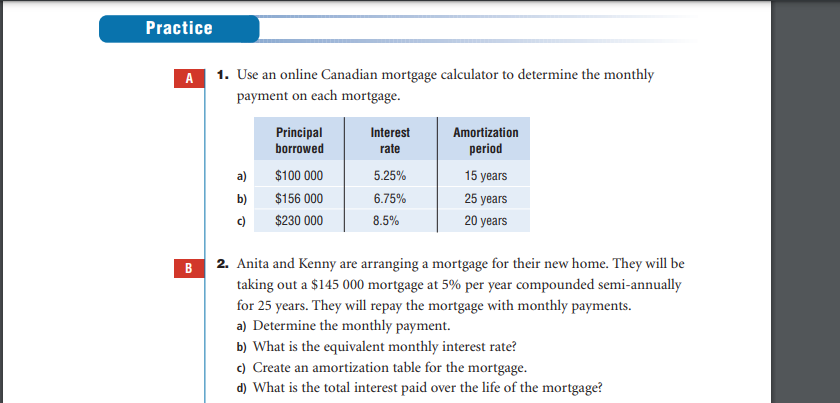 Solved Practice A 1 Use An Online Canadian Mortgage Chegg Com